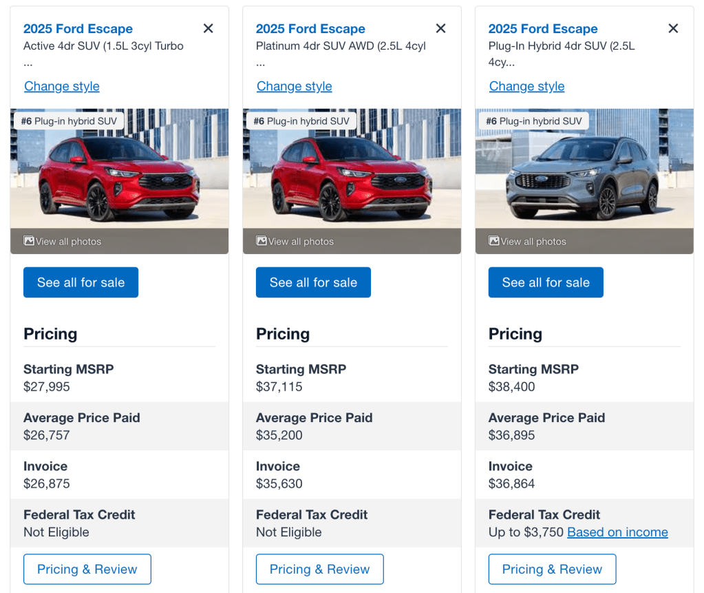 Consumers effectively pay for two powertrains in a body designed for gas combustion, which means losing the style and performance benefits of fully-electric architectures, while paying more than ICE and conventional hybrid (HEV) variants. This can increase the base vehicle cost by $10,000-$15,000 over those alternatives. Moreover, few OEMs have prioritized 30D tax credit qualification in production planning for their PHEV models, leaving few models eligible.